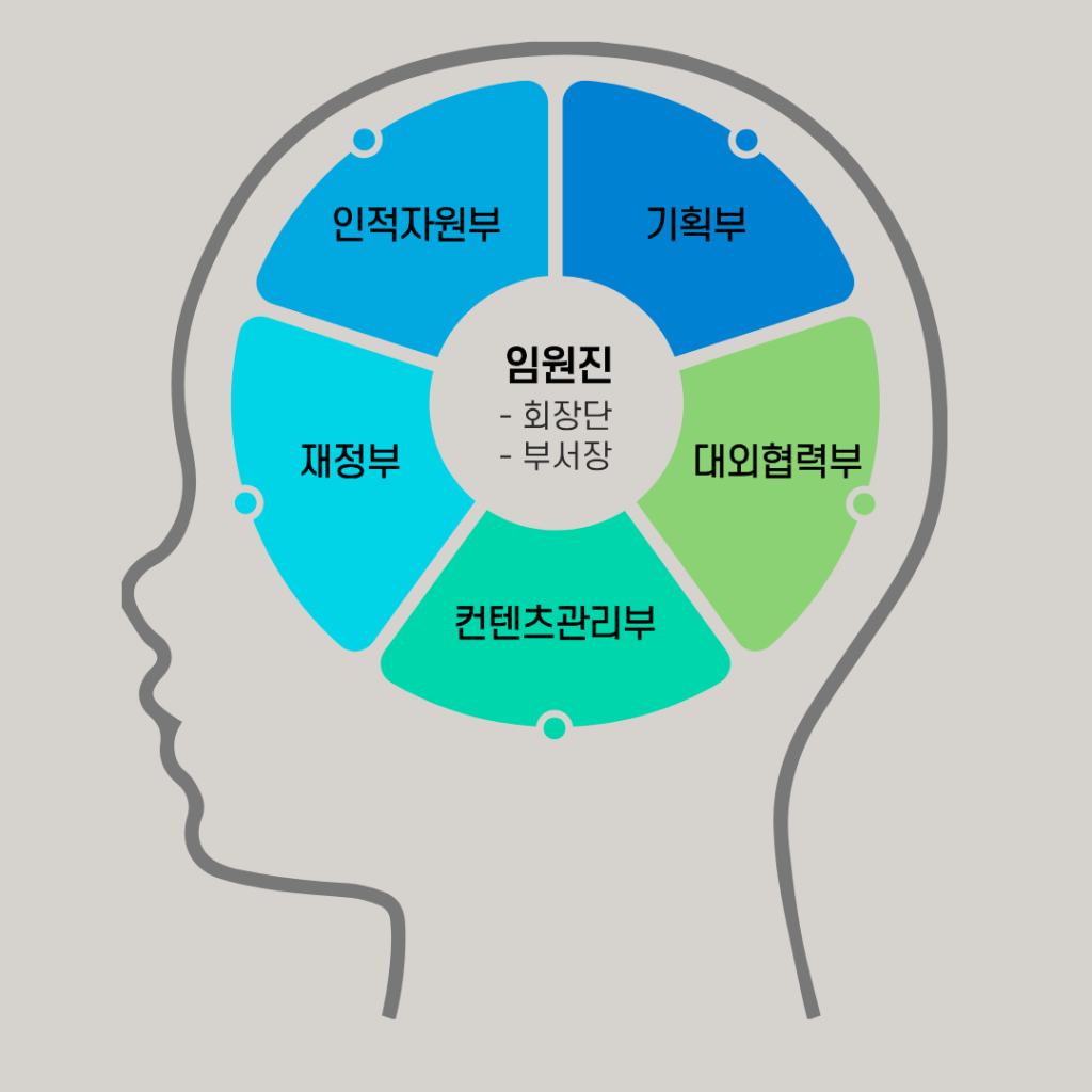 NewLearn에서는 많은 활동이 원활하게 진행될 수 있도록 업무를 5개의 부서로 분배하고 있습니다. 회장과 부회장(회장단)으로 이루어진 임원진, 그리고 5명의 부서장이 모여 뉴런의 전반적인 활동이 유기적으로 짜여지도록 노력하고 있습니다.